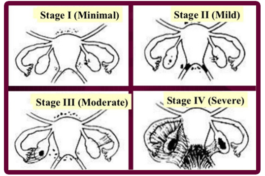 Pratik olarak Amerikan Üreme Cemiyetine göre çikolata kisti hastalığı 4 evreye ayrılır:
